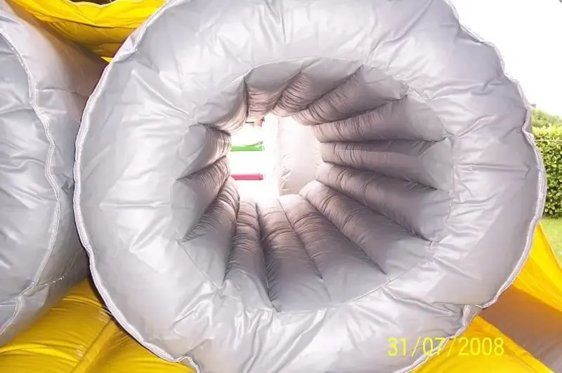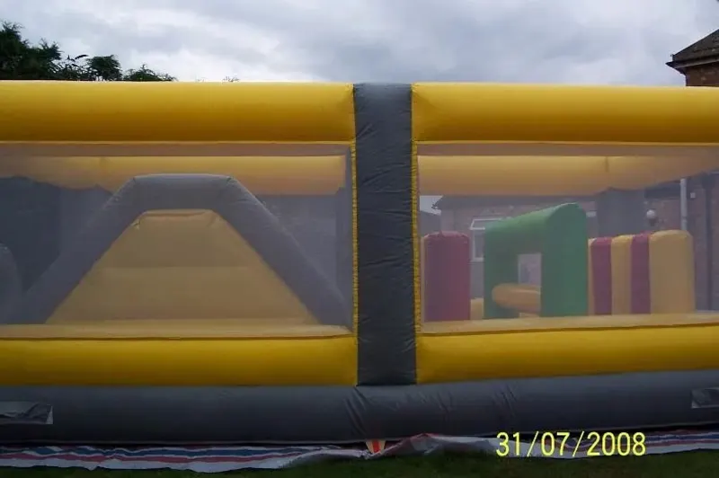 14m x 4 x 4.5m High, Ideal for larger gardens (minimum 4feet entrance required to get the assault course through) Go through a tunnel, up/down a slide, through a squeeze and then Biff and Bash your way to the finish.
