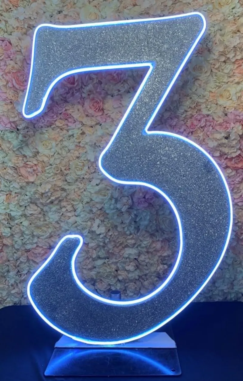 Our 4ft Giant Neon LED letter and numbers are self supporting and stand alone. Great for special birthdays 1,2,3,4,5,6,7,8,9,10,1 ,13, 16 ,18 ,21, 30 , 40 ,50 ,60, 65, 100 etc, you can also have initials such H&R , company names for corporate events"ABC LEISURE" and product launches.