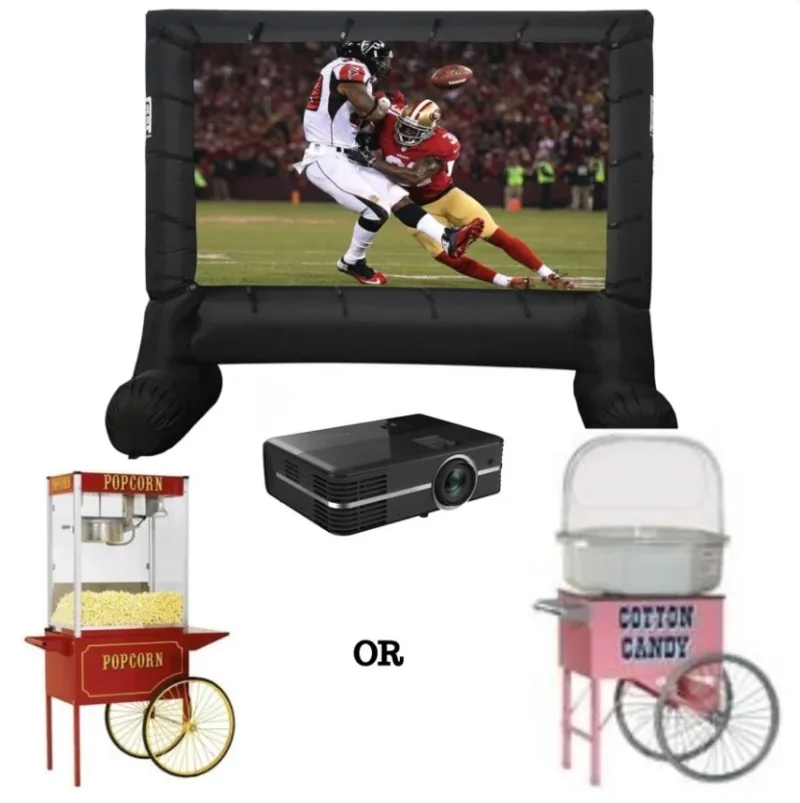 Our Pop up cinema packages come with an attendant to make your popcorn or candyfloss whilst you entertain your guests. Choose either Popcorn or Candy Floss at the check out. Max servings 75 in a 2 hour slot included.
