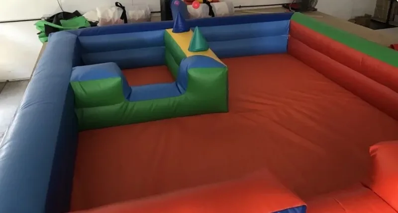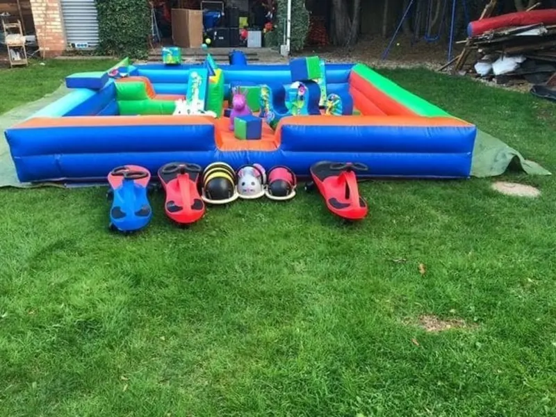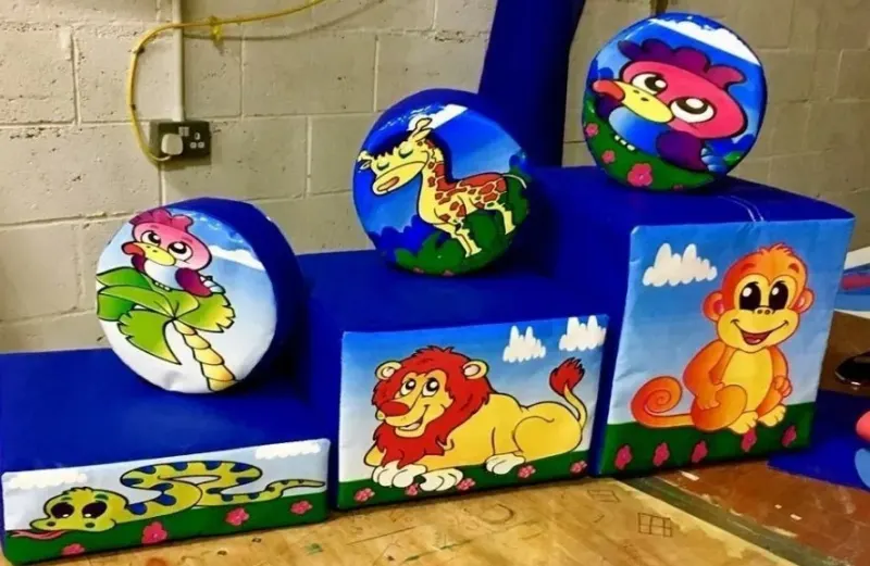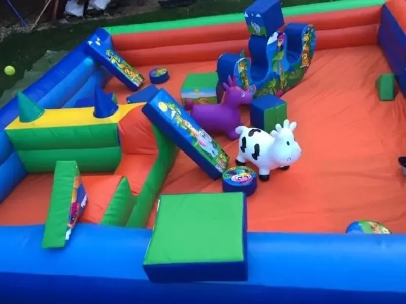 Activities for small children in an inflatable surround with animal themed soft play equipment made from soft materials.
